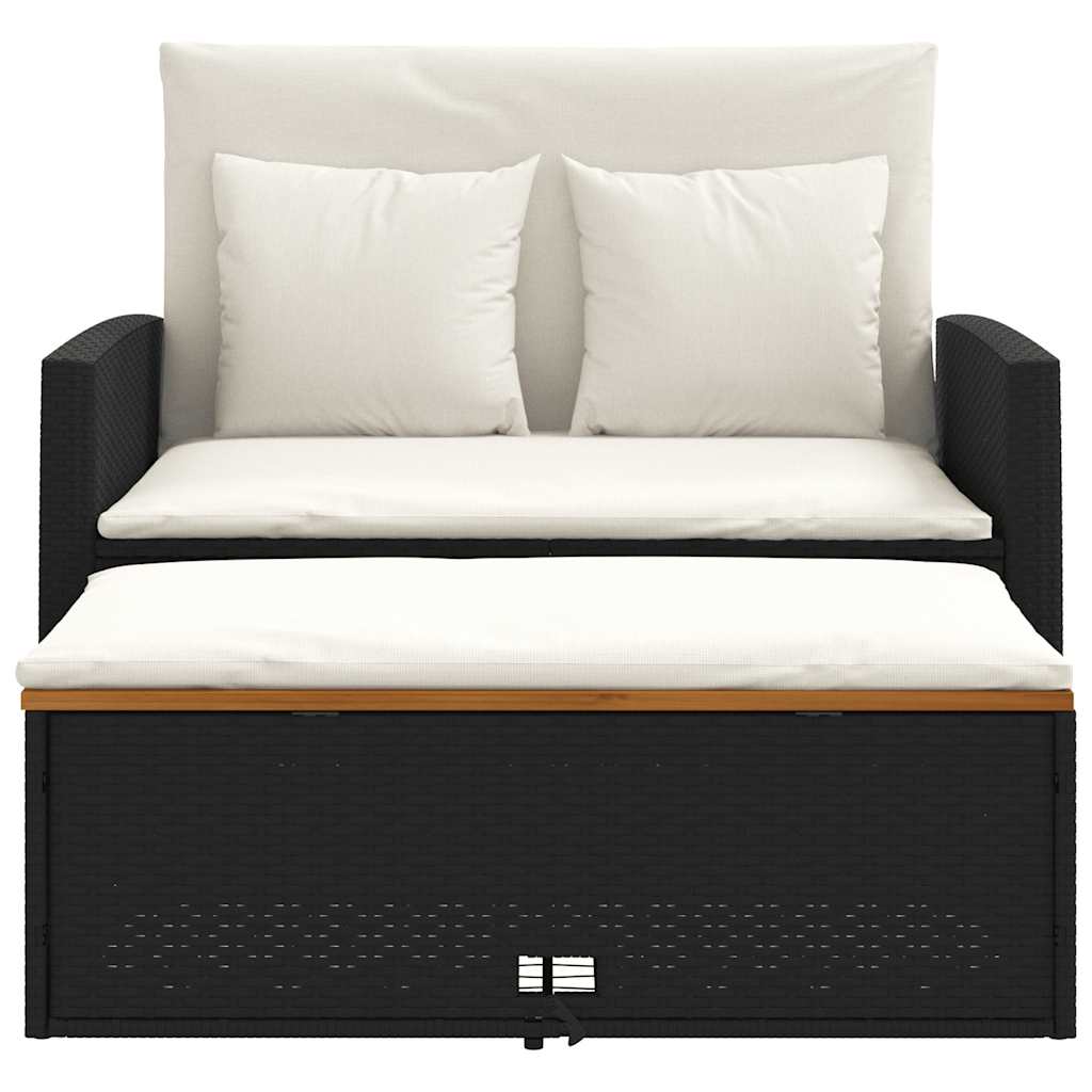 2-personers havesofa med hynder polyrattan og akacietræ sort