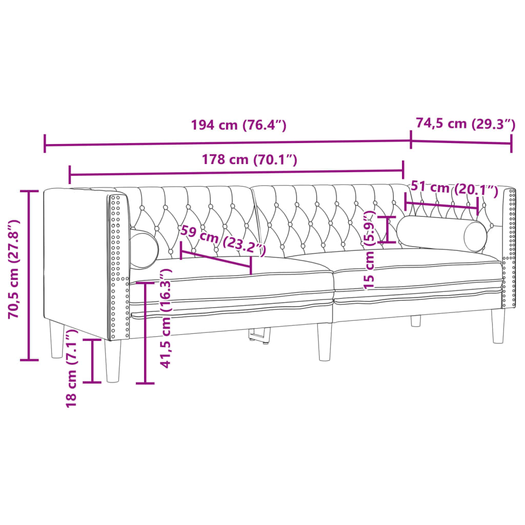 - Komfortabel siddeoplevelse: Sofaen er yderst komfortabel takket være de tykt polstrede sæder, armlæn samt ryghynder. De medfølgende bolsterpuder pynter ikke bare i dit interiør, men skaber også ekstra komfort, når du sidder eller ligger ned.