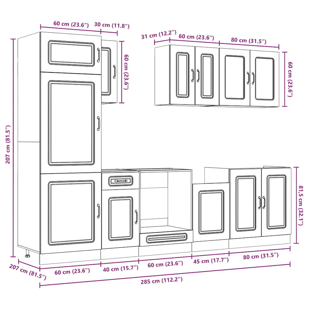8 dele køkkenskabssæt Kalmar antikt træ konstrueret træ