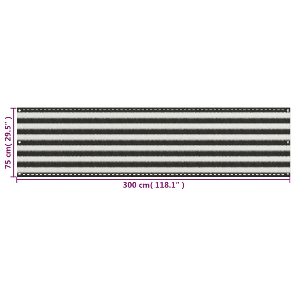 altanafskærmning HDPE 75x300 cm antracitgrå og hvid