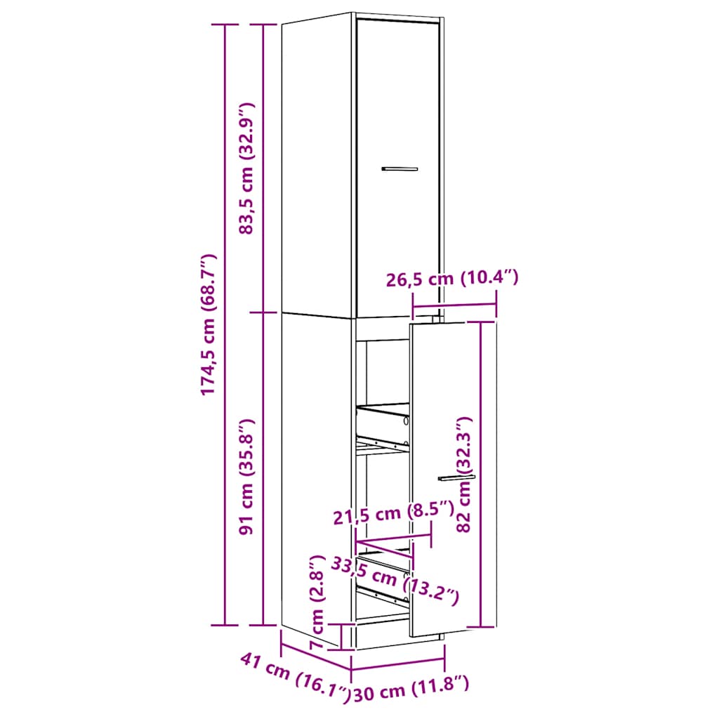 apotekerskab 30x41x174,5 cm konstrueret træ egetræsfarve