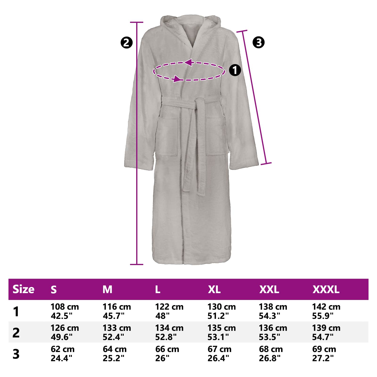 - Materiale: Lavet af 100% bomuld, denne badekåbe giver en luksuriøst blød og åndbar oplevelse. Bomuld suger fugt og holder dig varm, så du får både komfort og funktionalitet. Perfekt til at slappe af efter bad, den giver pålidelig varme i de kolde måneder og føles dejlig hver gang du svøber den om dig.
