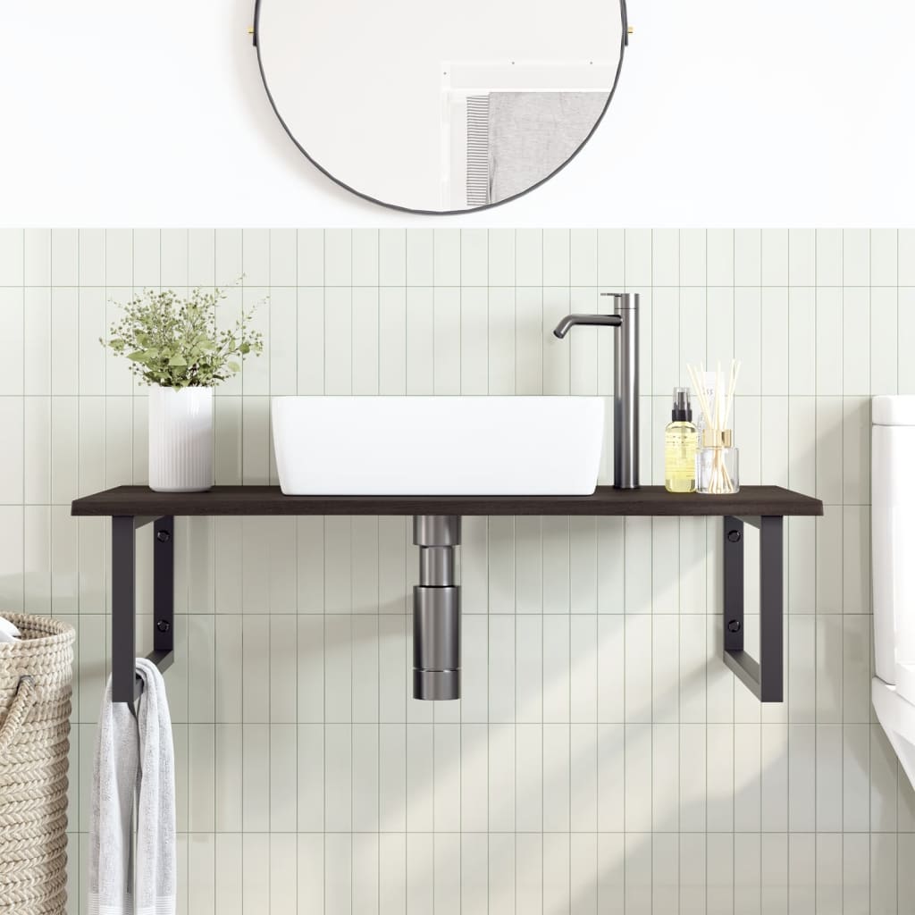 badeværelseshylde stål og massivt egetræ
