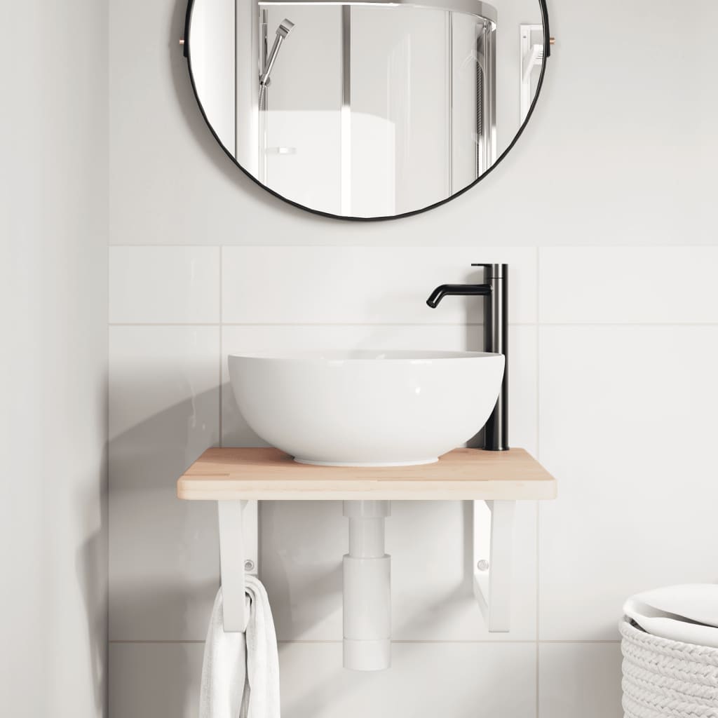 Den væghængte hylde kan monteres sikkert på væggen. Det er en elegant og pladsbesparende løsning til dit badeværelse.