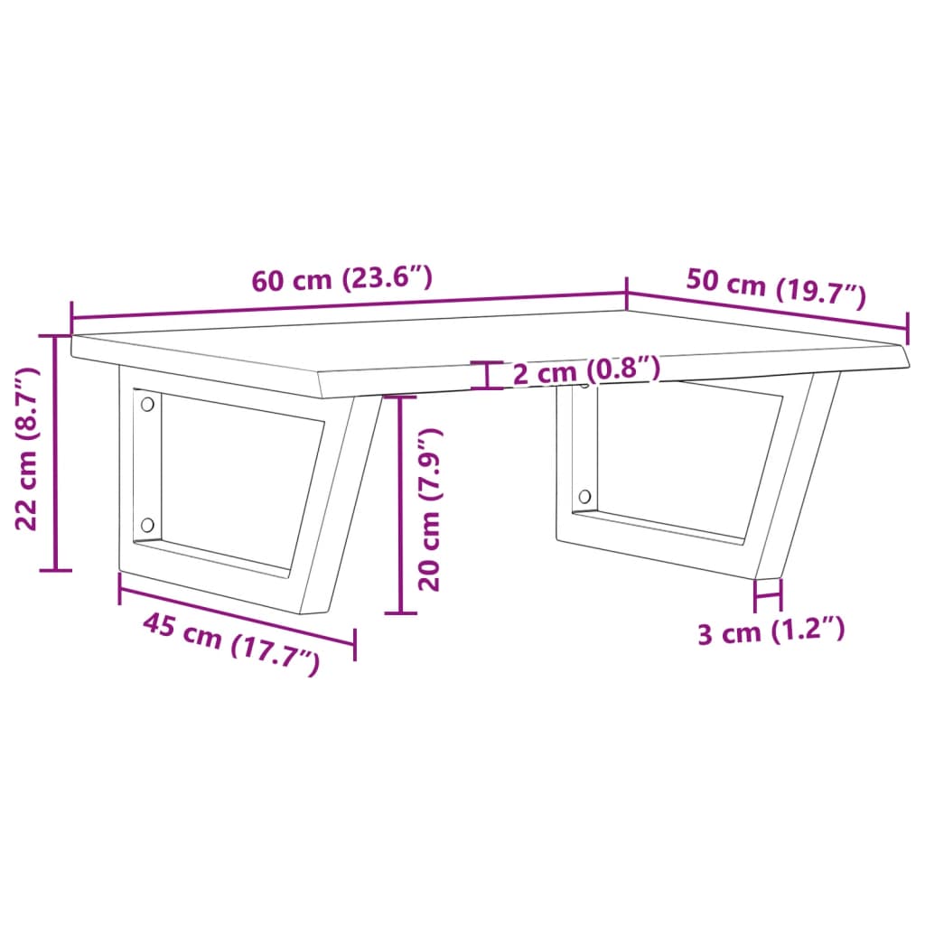 - Mål, hyldebeslag: 20 x 45 cm (B x L)