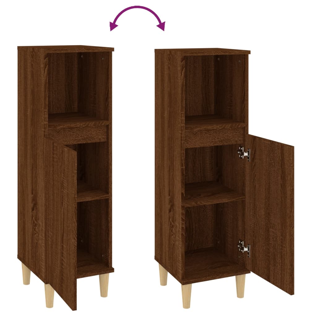 badeværelsesskab 30x30x100 cm konstrueret træ brunt egetræ