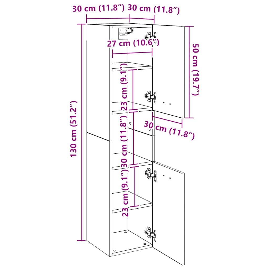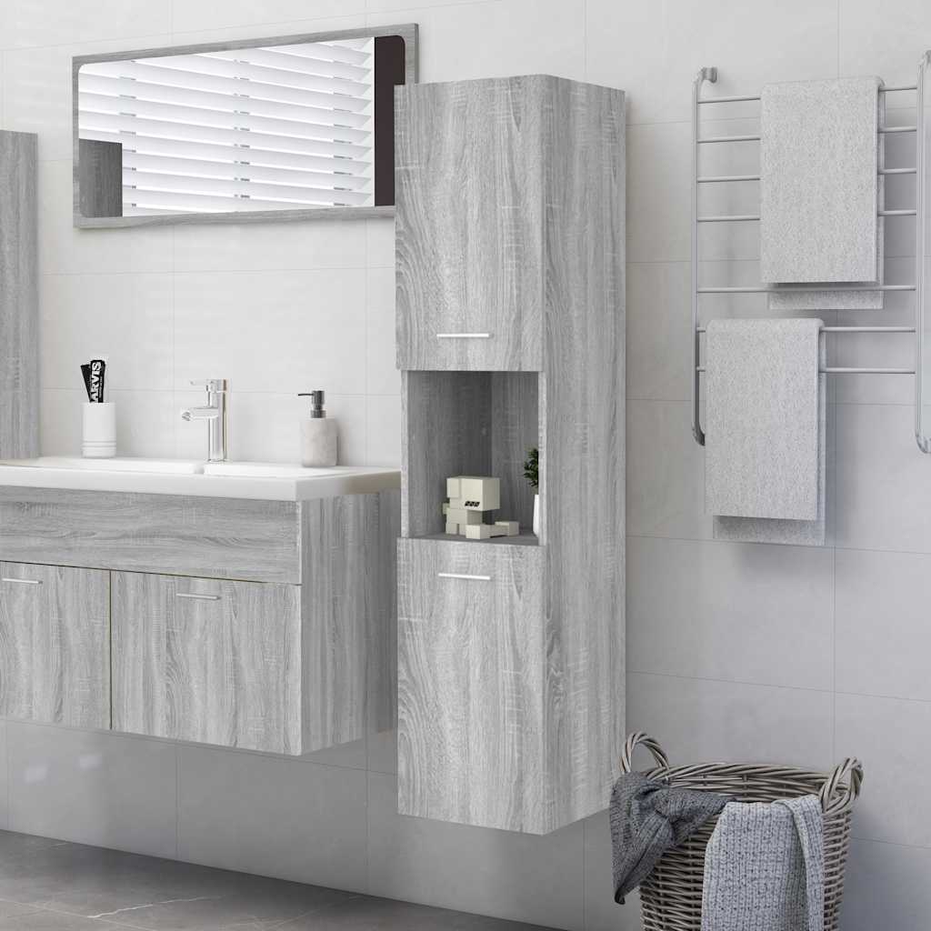 badeværelsesskab 30x30x130 cm konstrueret træ grå sonoma-eg