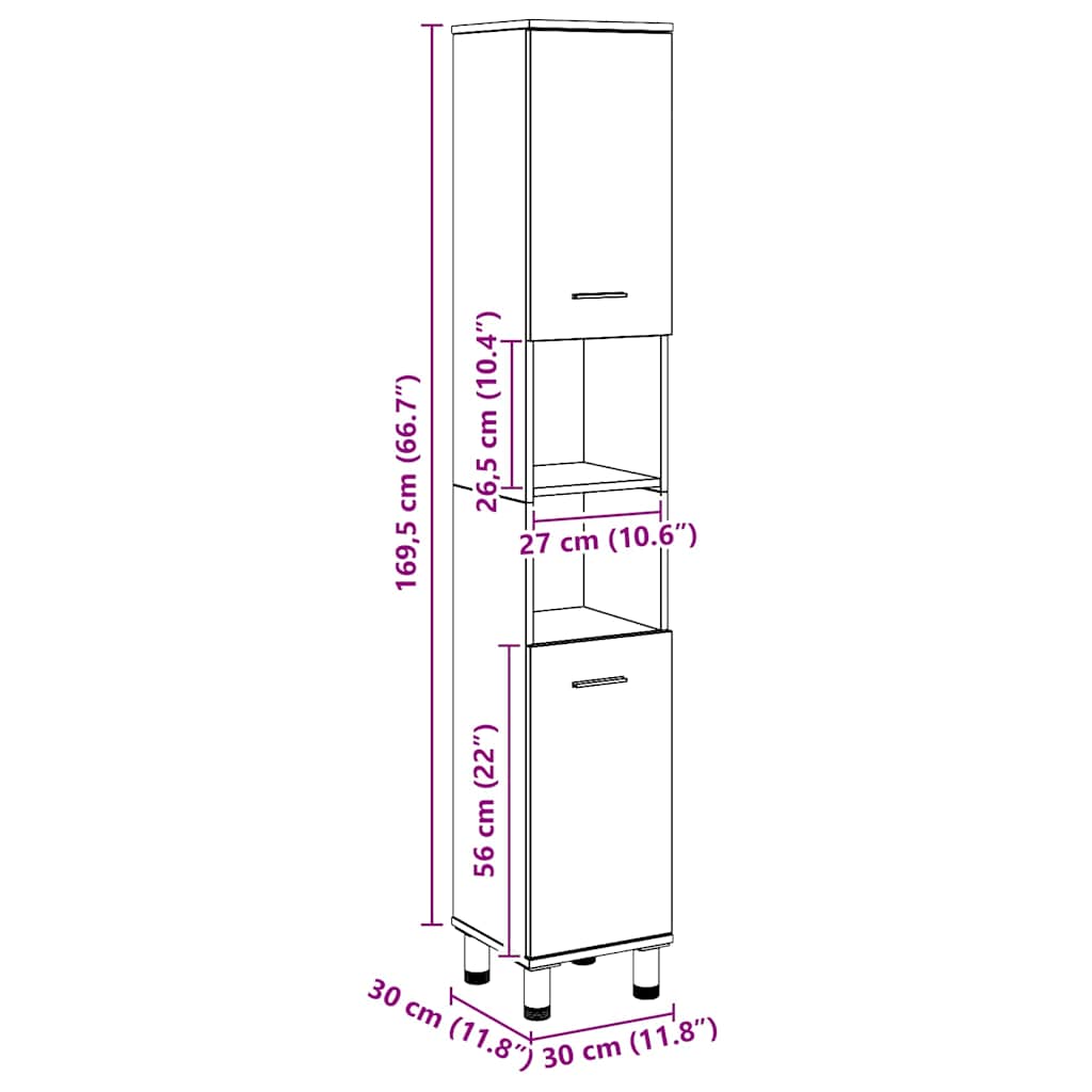 badeværelsesskab 30x30x179 cm konstrueret træ kunsteg