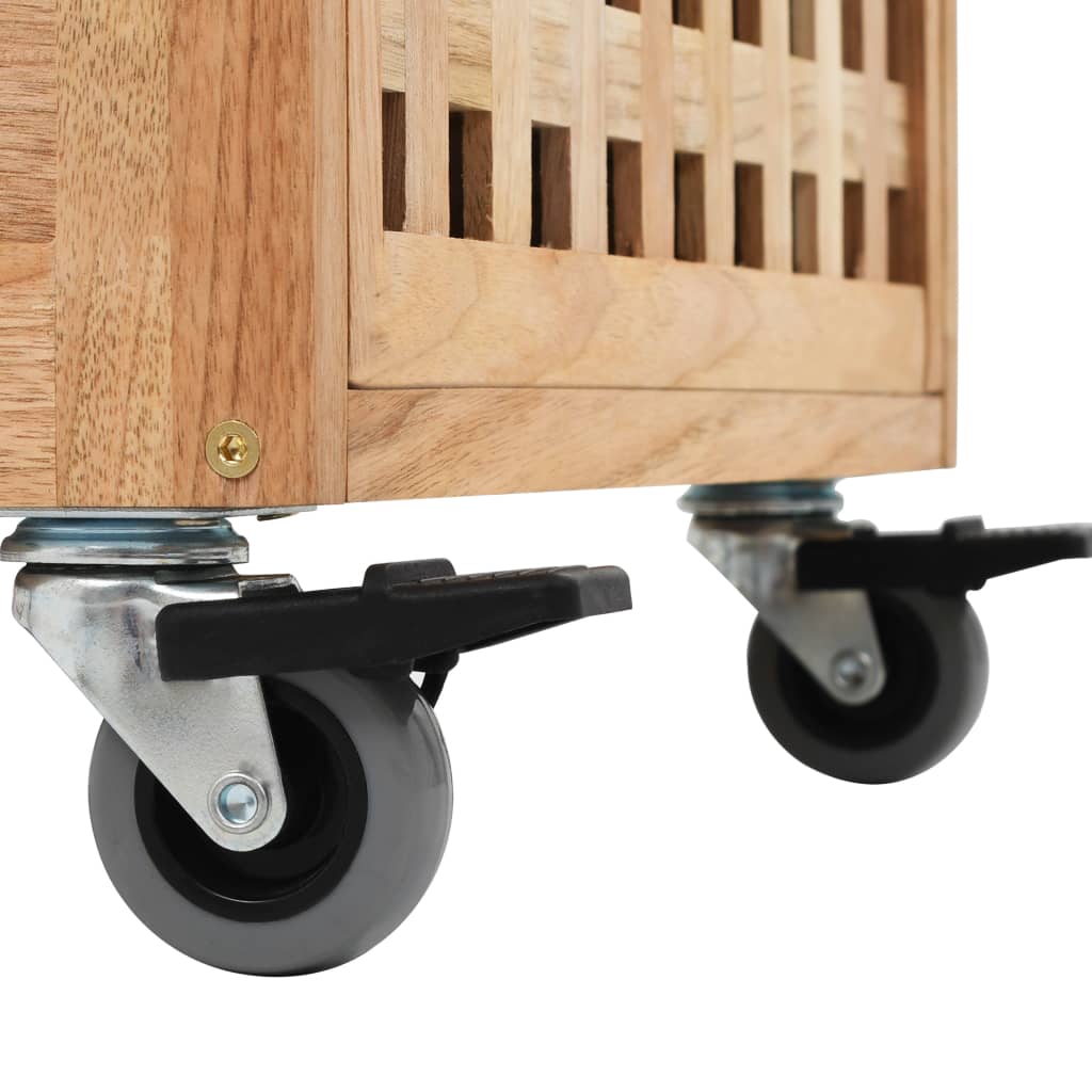Badeværelsesskabet har tre kurve, som giver rigelig med plads til ting såsom håndklæder, vasketøj, hygiejneprodukter mv. Gitterdesignet giver god ventilation inde i kurvene. Skabet er fremstillet af massivt valnøddetræ og krydsfiner, så det er særdeles robust og holdbart. Skabet er nemt at flytte rundt takket være de fire hjul.