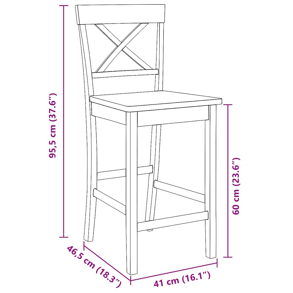 barstole 2 stk. massivt gummitræ naturfarvet