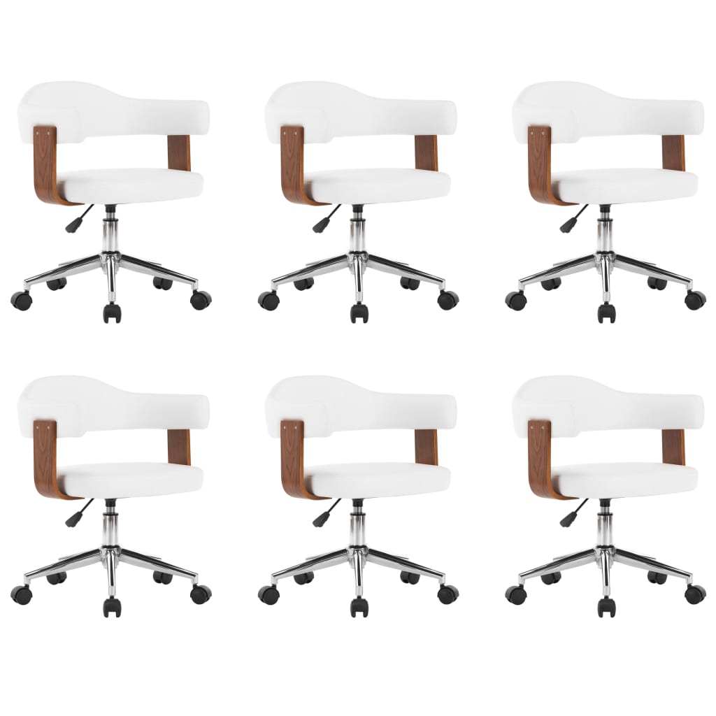 drejelige spisebordsstole 6 stk. bøjet træ og kunstlæder hvid
