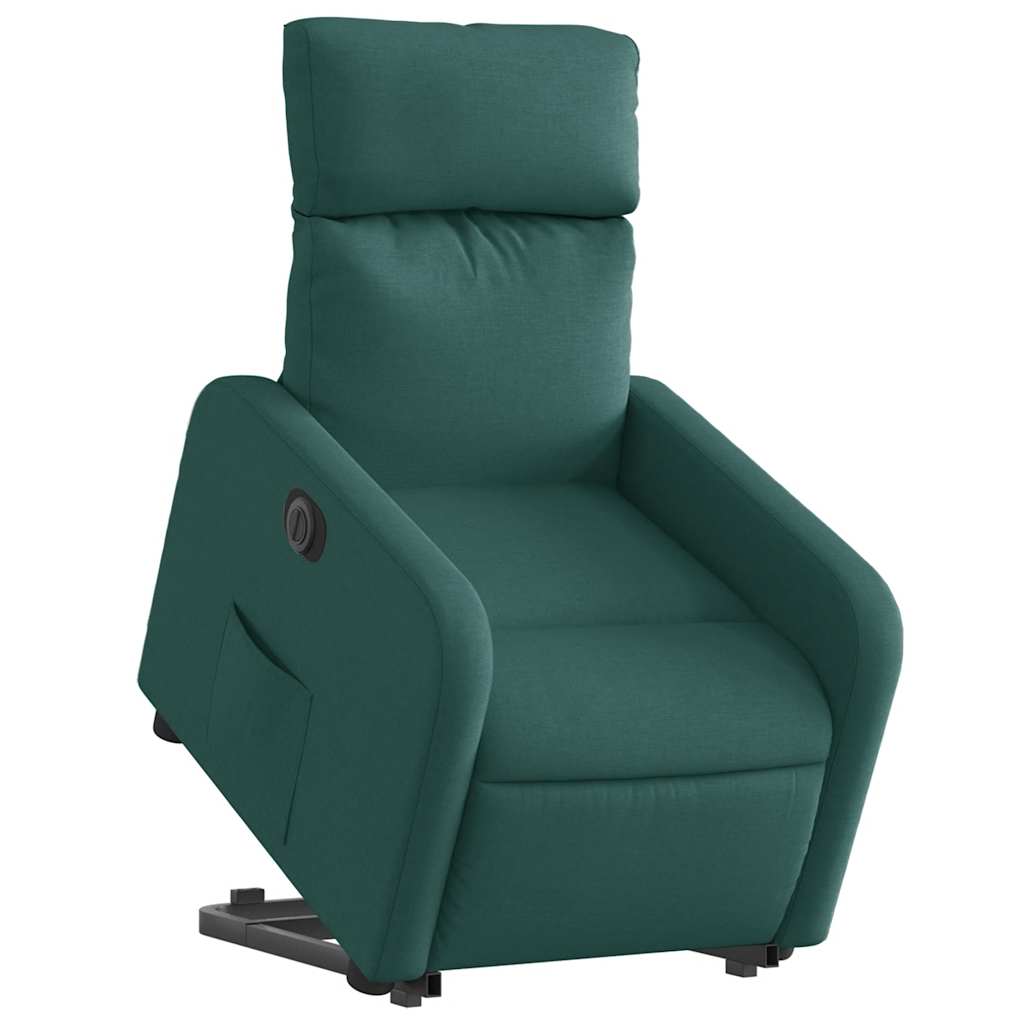 eldrevet lænestol med løftefunktion stof mørkegrøn