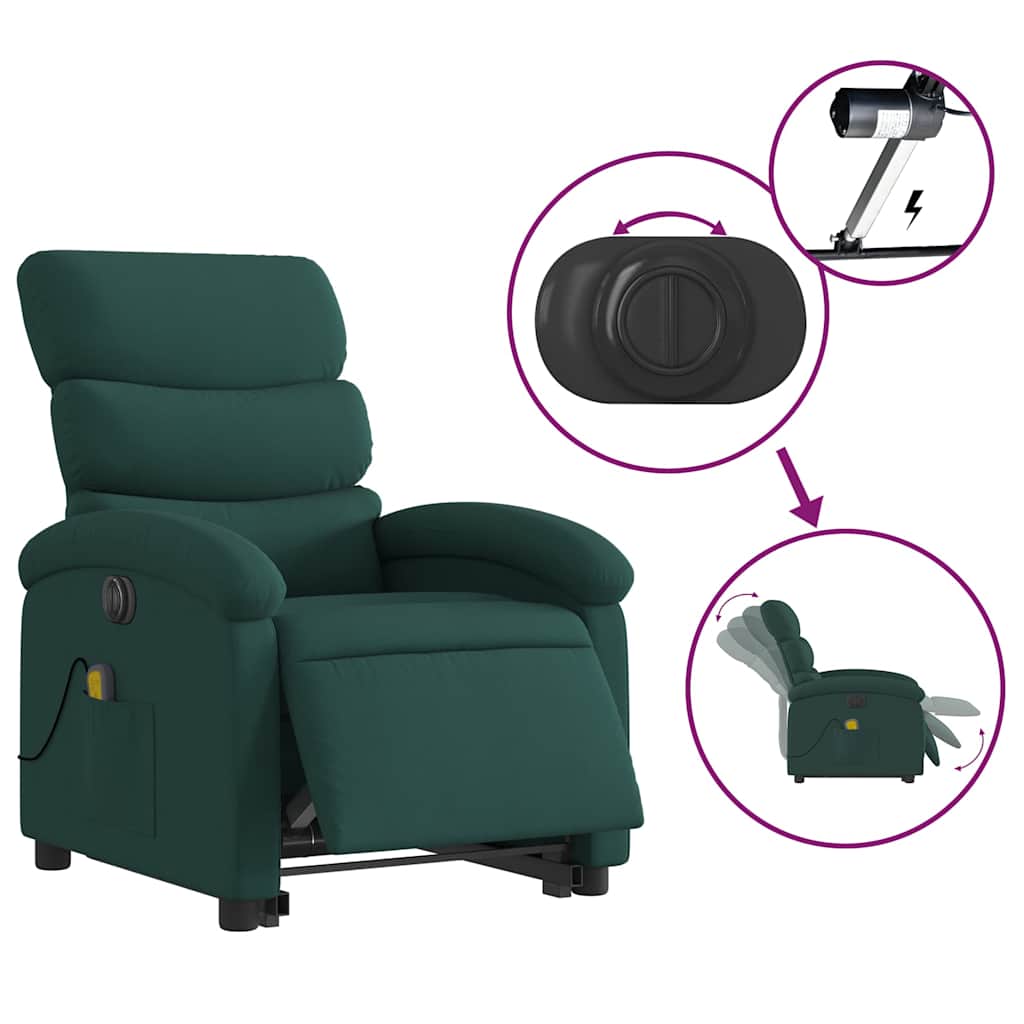 elektrisk massagestol med løftefunktion stof mørkegrøn