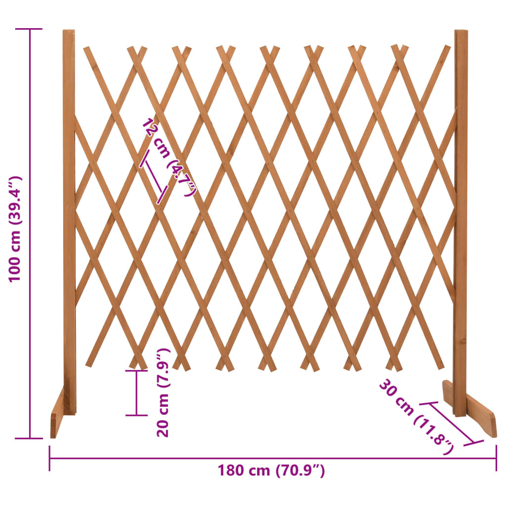 Dette hegnspanel er lavet af massivt fyrretræ, så det er holdbart og velegnet til udendørsbrug. Hvert espalierhegn kan udvides med op til 180 cm i bredden. Dets udvidelige design gør havehegnet kompatibelt med haver i alle størrelser. Det vil også se glimrende ud langs blomsterbede eller stier.
