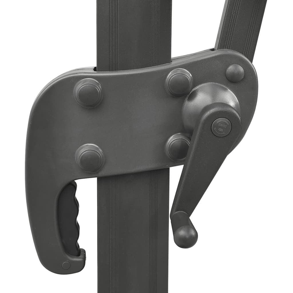 Parasolovertrækket er lavet af UV-beskyttende og falmebestandigt polyester og giver dig optimal beskyttelse mod solen og er nemt at rengøre. Det har en robust krydsfod for at øge stabiliteten. Parasollens eksklusive design giver dig mulighed for at vippe og dreje den 360 grader for at blokere for solen. Den stærke aluminiumsstang sammen med de 8 ribber gør parasollen meget stabil og holdbar. Denne haveparasol kan nemt åbnes og lukkes takket være håndsvingmekanismen. Derudover hjælper den dobbelte baldakin med ventilation.