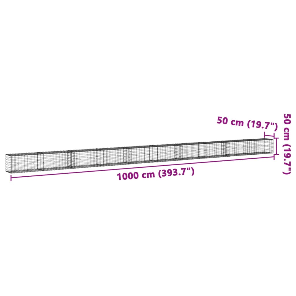 gabionkurv med cover 1000x50x50 cm galvaniseret jern
