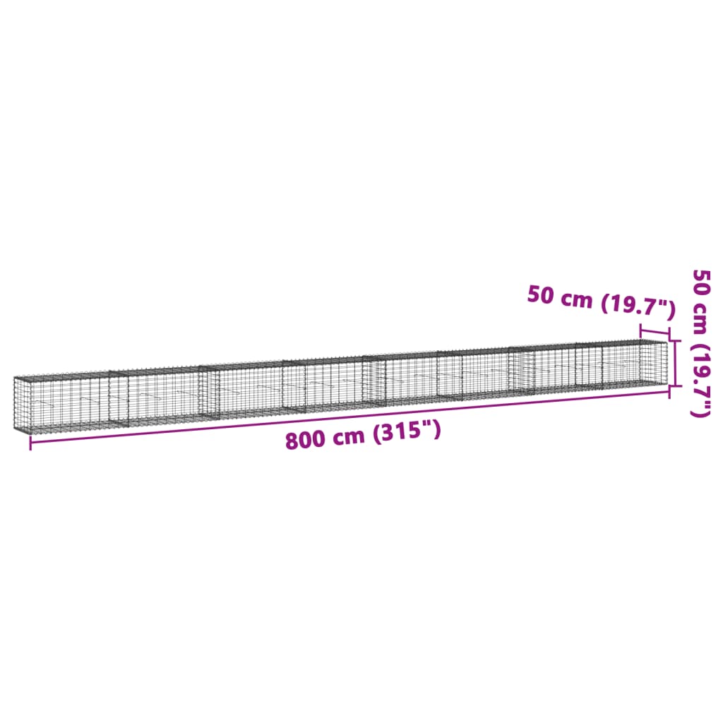 gabionkurv med cover 800x50x50 cm galvaniseret jern