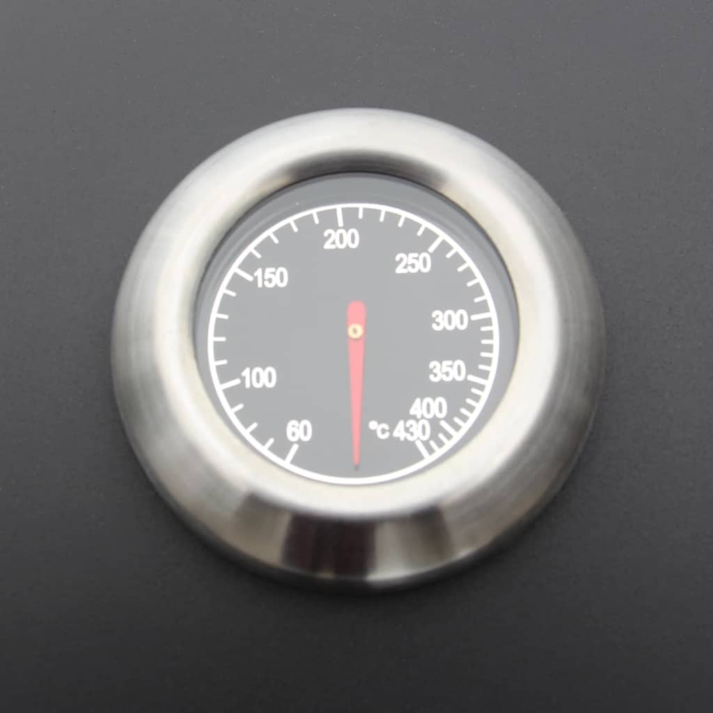 Gasgrillen har et stilfuldt og funktionelt design. Den har en stor tilberedningsoverflade og et kraftigt låg med indbygget termometer, som viser temperaturen nøjagtigt. Et sidebord giver yderligere arbejdsplads til tilberedning af saucer eller dit yndlingstilbehør. En udtagelig fedtdryp-beholder er også inkluderet, og den er nem at rengøre.