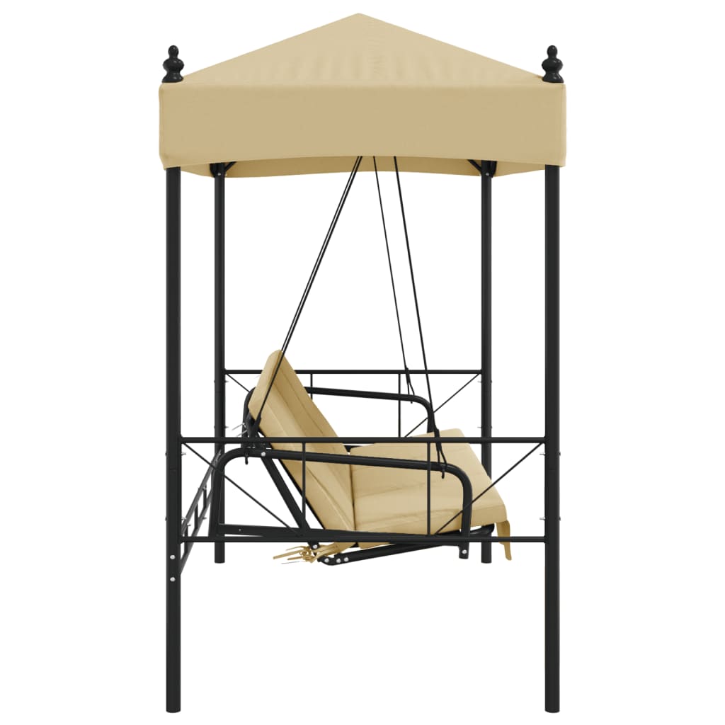 - Med baldakin: Denne gyngebænk har en polyesterbaldakin, der beskytter dig mod UV-stråler og støvregn.