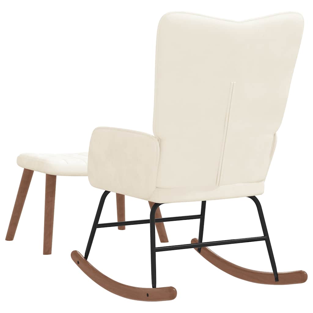 Denne gyngestol med syninger på ryglænet er æstetisk tiltalende. Takket være dens skumpolstring, der er betrukket med blødt fløjl, kan du nyde optimal komfort, når du sidder i den. Med gyngeskinnernes lange design vil stolen ikke let tippe omkuld. Stolen med fodskammel er understøttet af stålstel og -ben samt gyngeskinner i træ, og den er stabil og holdbar.