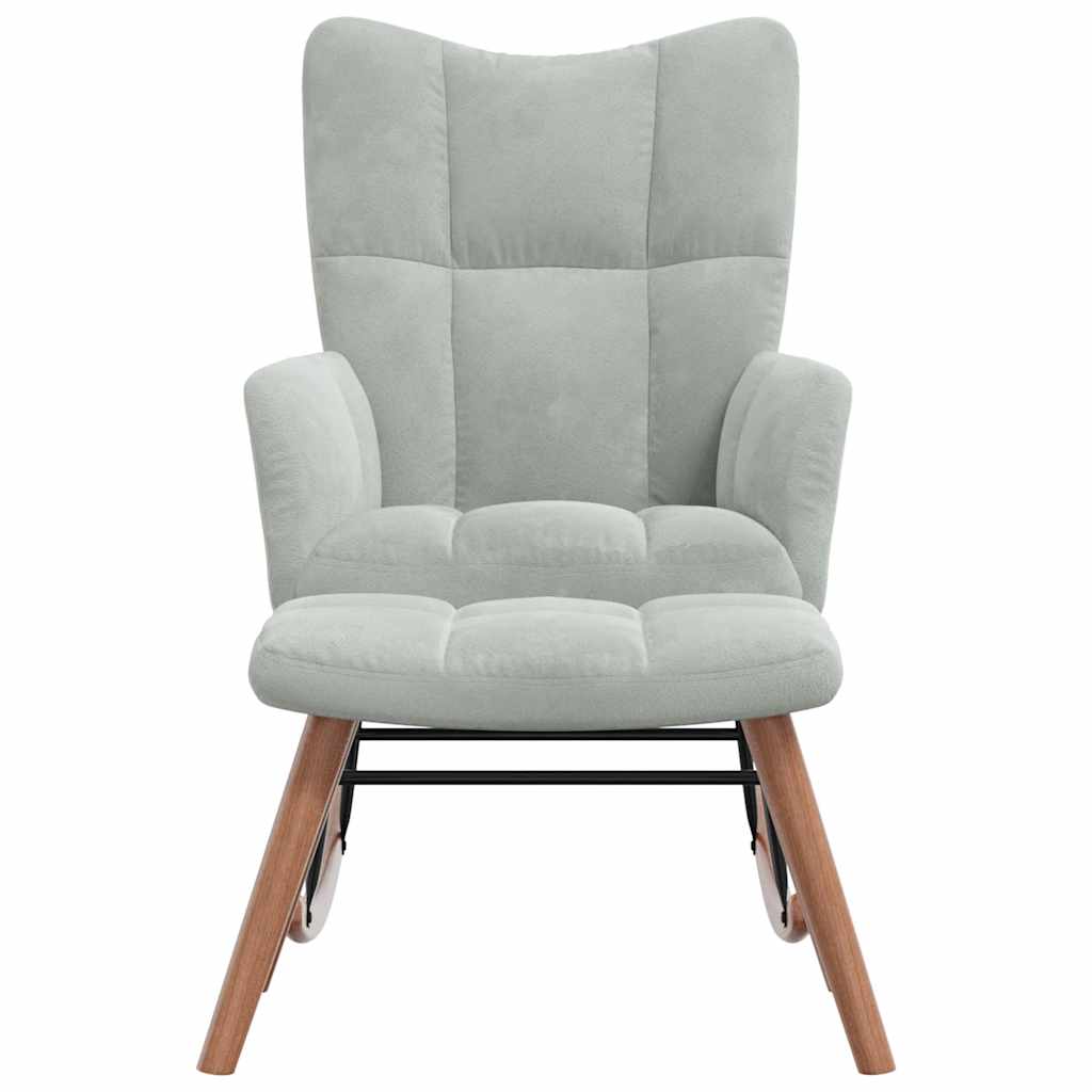 Gyngestolen har et attraktivt design med sine blokformede syninger. Takket være skumpolstringen, der er betrukket med blødt fløjl, kan du nyde optimal komfort, når du sidder i stolen. Med gyngeskinnernes lange design vælter hvilestolen ikke let. Derudover er stolen understøttet af stålstel og -ben sammen med gyngeskinner af træ, så den er stabil og holdbar.