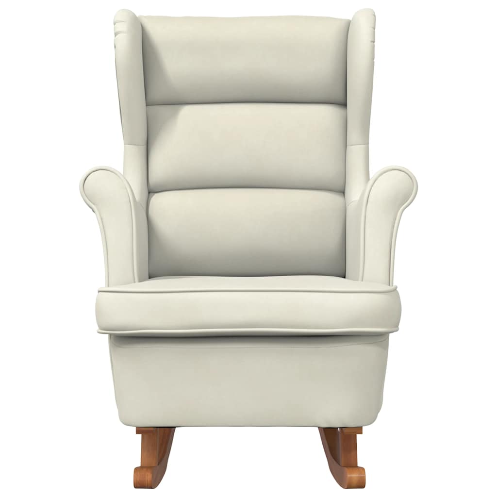 gyngestol med ryglæn cremefarvet fløjl og massivt træ