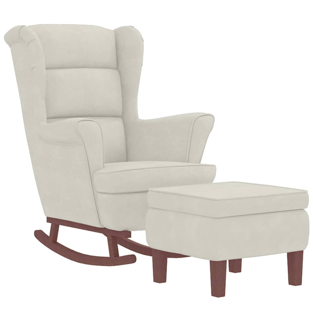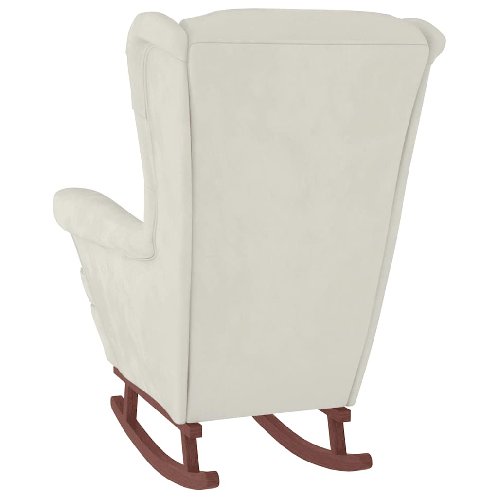 gyngestol med ryglæn cremefarvet fløjl og massivt træ