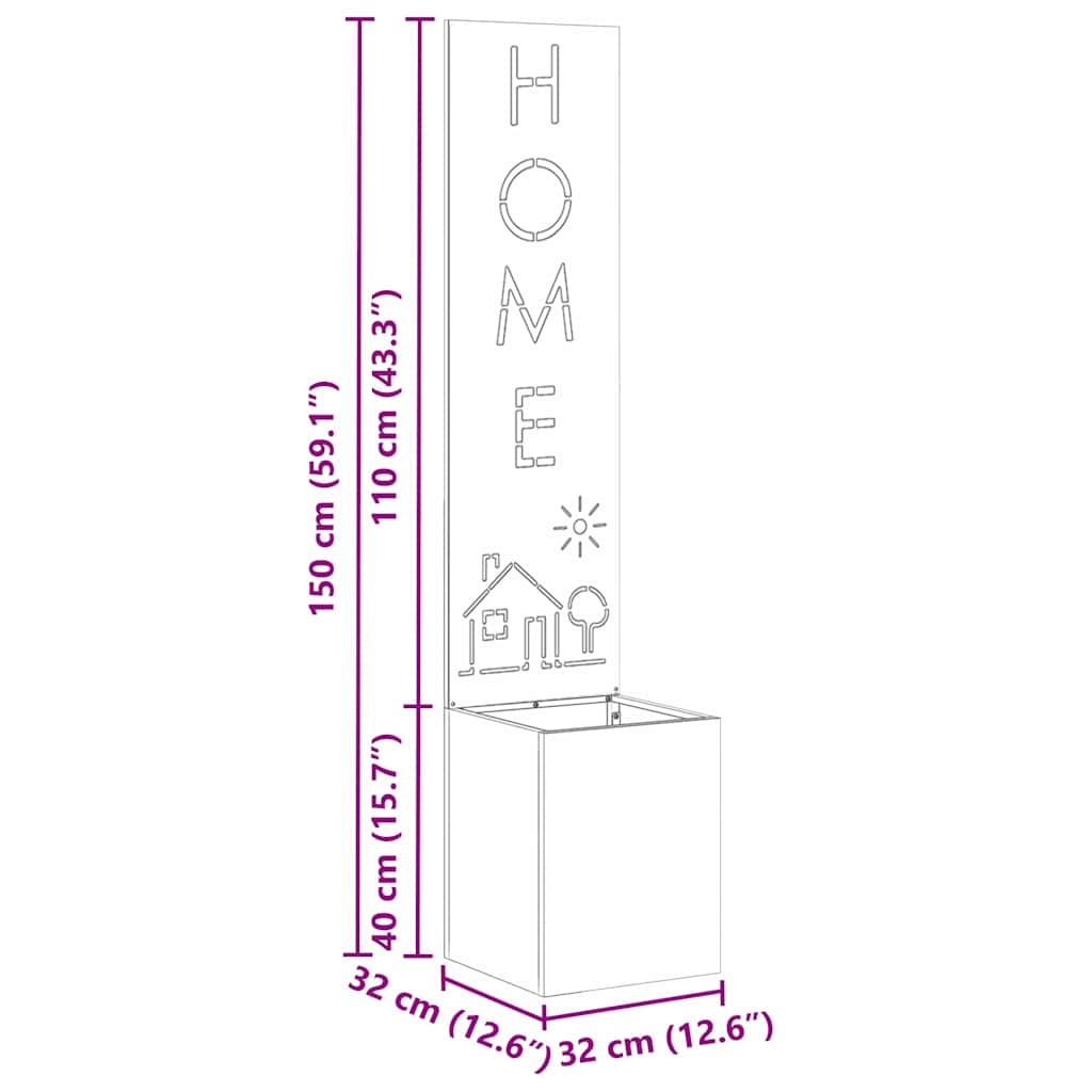 - Stål konstruktion Denne privatlivsskærm er lavet af solidt stål, så den er robust og giver en god barriere mod vejret og nysgerrige blikke. Materialet er pålideligt, så den holder længe med minimal vedligeholdelse. Den glatte, uigennemsigtige finish holder dit privatliv intakt og tilføjer samtidig et stilfuldt look til din have eller terrasse.