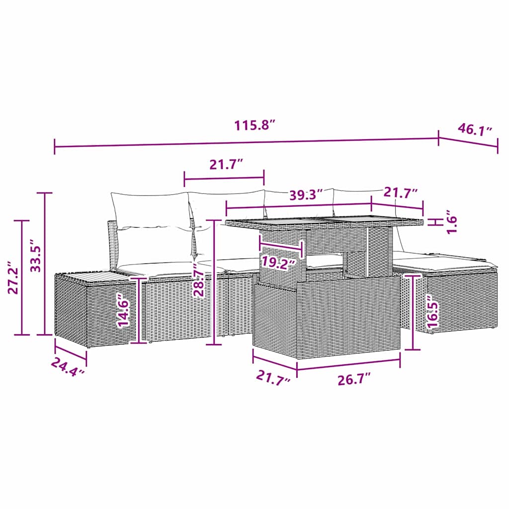 - Funktionelle Komponenter: Dette sæt inkluderer en sidesofa, centerpladser, en fodskammel og et havebord, alle med indbygget opbevaring. Dette multifunktionelle design giver praktisk anvendelse til ekstra ejendele, så der holdes et pænt og organiseret rum uden at gå på kompromis med stilen.