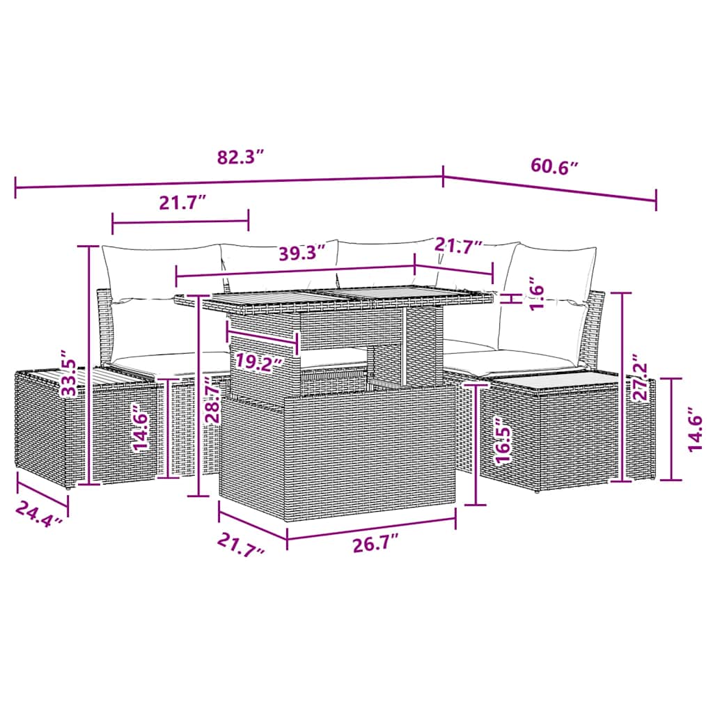 - Opbevaringsfunktionelt Design: Komponenter som side sofaer og et hjørnesæde kommer med integrerede opbevaringspladser, hvilket tilføjer et lag af funktionalitet. Uanset om du opbevarer puder eller udendørs tilbehør, rummer opbevaringsrum nemt dine behov, mens de bevarer møblernes slanke udseende.