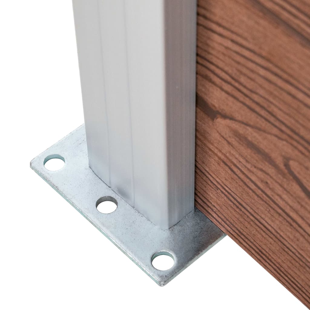 Dette WPC-hegn har et åremønstertryk på den ene side og almindeligt tryk på den anden side, så du kan vælge det design, du bedst kan lide. Vores hegnspanel i træplastkomposit kræver ikke yderligere behandling såsom oliering eller maling. Det er yderst holdbart samt resistent over for råd og rust. Takket være topprofilen i aluminium er hegnene tæt sammensluttede, hvilket øger deres stivhed og styrker mod slag. Modulsystemet gør det nemt at installere og giver mulighed for at udvide hegnet frit. Disse stolper har tre åbninger, som giver dig mulighed for at montere hegnet på forskellige måder. Du kan eksempelvis opsætte det i en lige linje (180 grader), ret vinkel (90 grader) eller i en T-form. Pakken indeholder 81 WPC-plader, 10 pæle og 9 aluminiumsstænger.