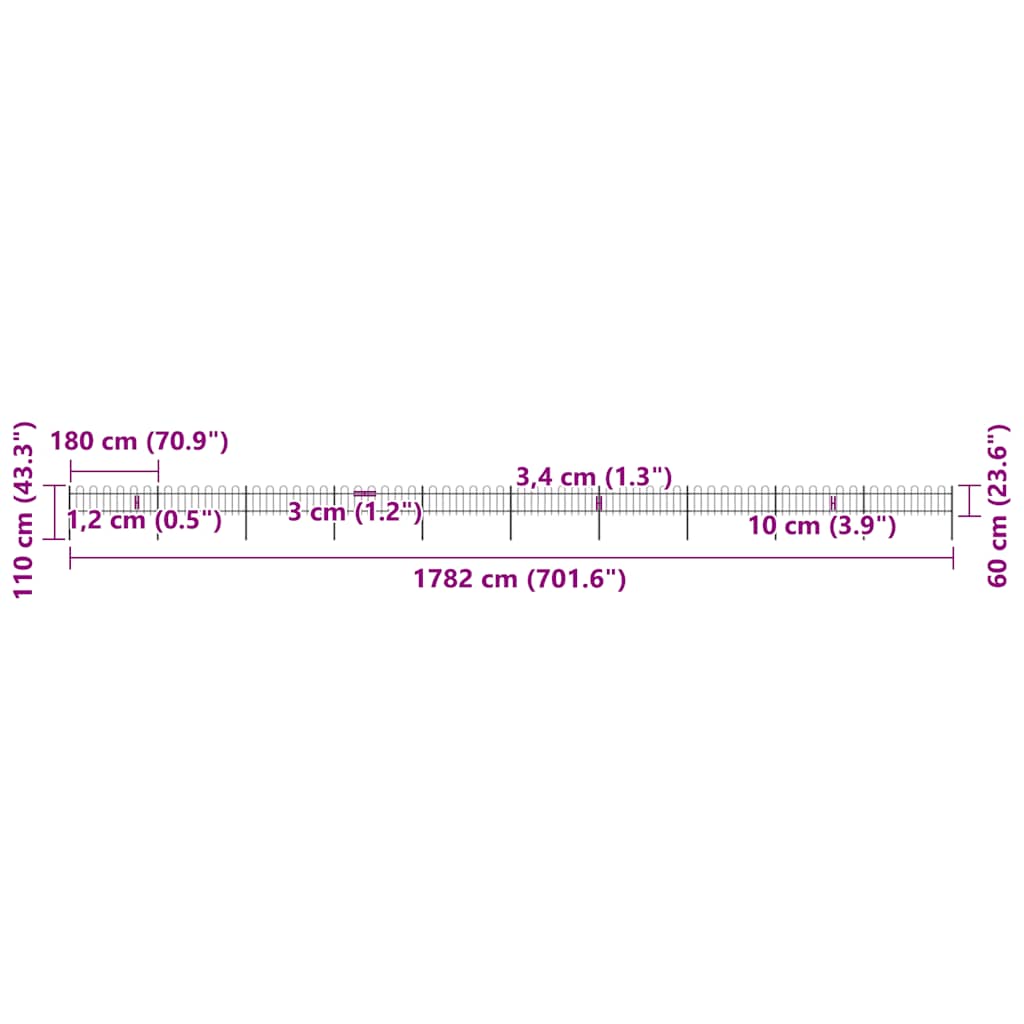 Lav et elegant hegn rundt om din have, dit hjem eller gangsti med vores havehegn! Vores dekorative hegn i stål, som består af 10 hegnspaneler og 11 stolper, har en samlet længde på 17 meter. Det vil danne en robust, sikker og vedligeholdelsesfri afskærmning til din have, dit hjem eller erhvervsejendom.