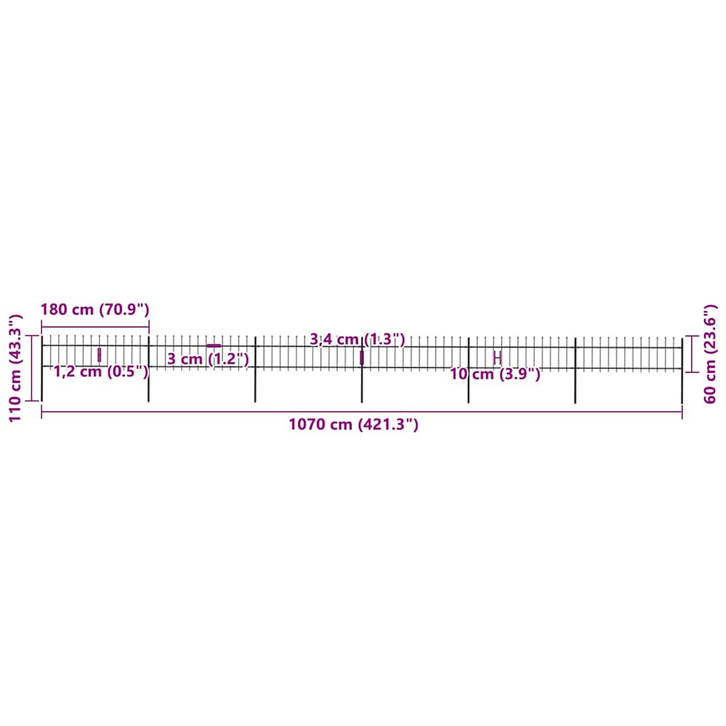 havehegn med spydtop stål 1070x60 cm sort
