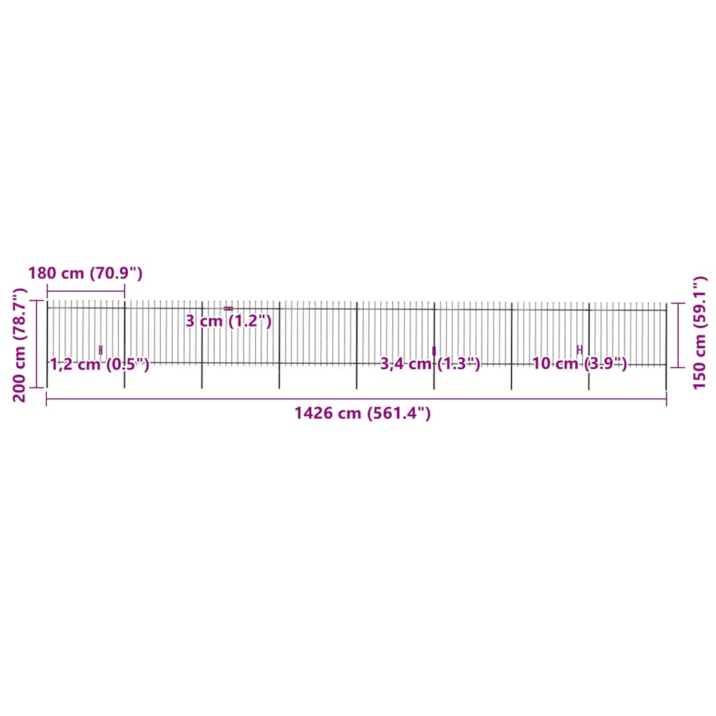 Lav et elegant hegn rundt om din have, dit hjem eller sti med vores havehegn! Vores dekorative hegn i stål, som består af 8 hegnspaneler og 9 stolper, har en samlet længde på 13,6 meter. Det vil danne en robust, sikker og vedligeholdelsesfri afskærmning til din have, dit hjem eller erhvervsejendom.