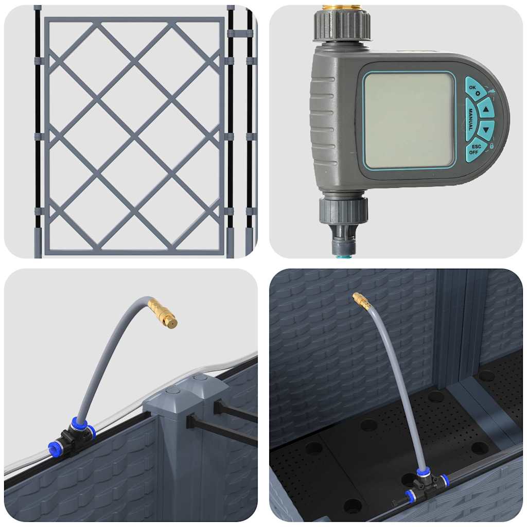 - Indbygget Vanding System: Udstyret med et avanceret vanding system fjerner denne havedåse gætteriet omkring vanding. Ved at udnytte indbyggede kanaler fordeler den effektivt vand direkte til plantens rødder, hvilket sikrer, at de modtager tilstrækkelig fugt, samtidig med at vandspild reduceres og sundere vækst understøttes.