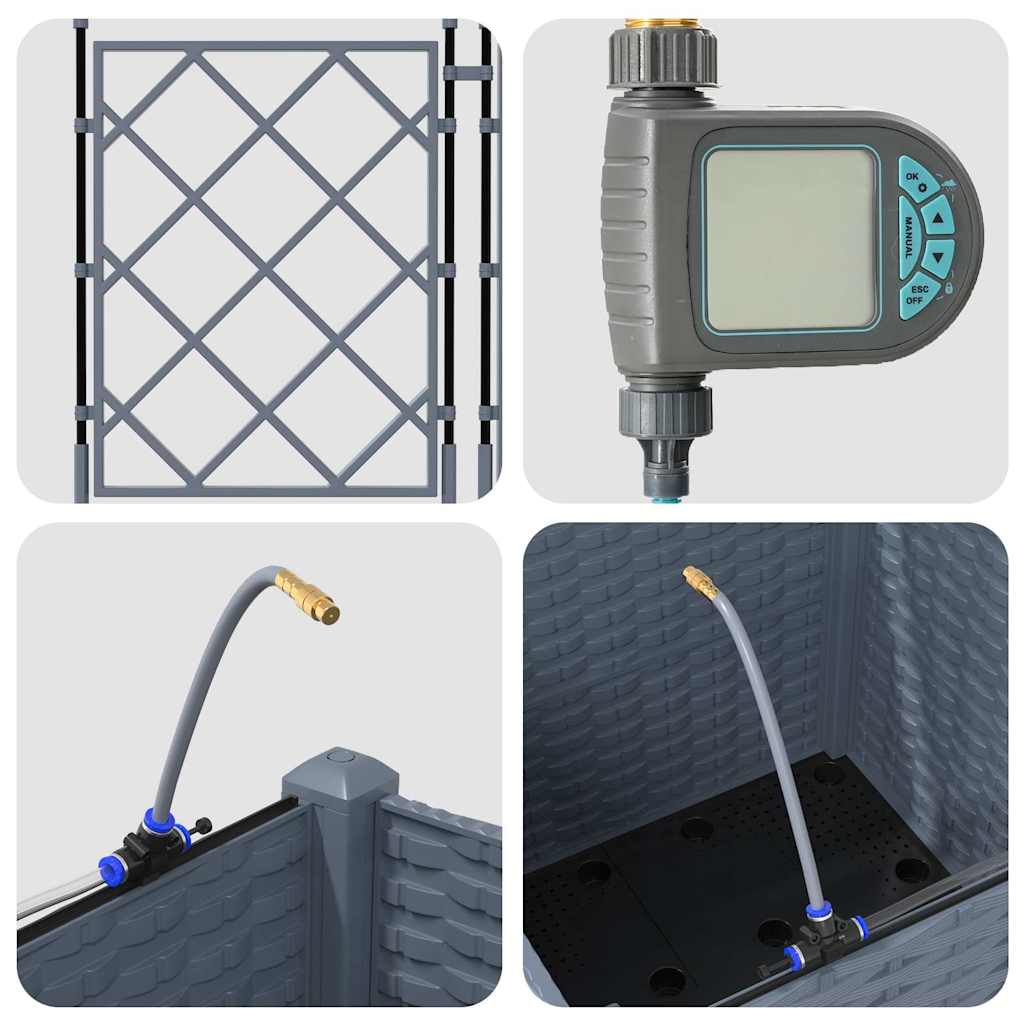 - Indbygget Vanding System: Udstyret med et avanceret vanding system fjerner denne havedåse gætteriet omkring vanding. Ved at udnytte indbyggede kanaler fordeler den effektivt vand direkte til plantens rødder, hvilket sikrer, at de modtager tilstrækkelig fugt, samtidig med at vandspild reduceres og sundere vækst understøttes.
