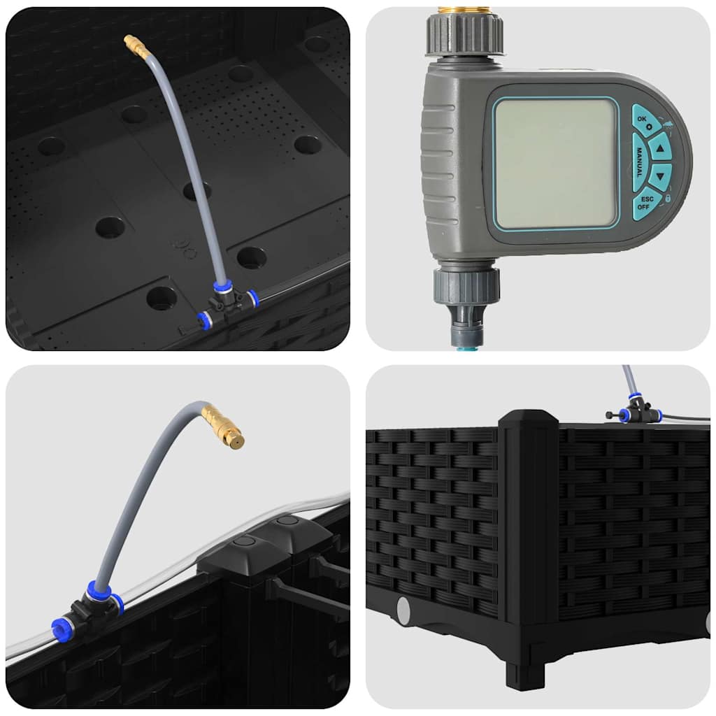 - Indbygget Vanding System: Udstyret med et avanceret vanding system fjerner denne havedåse gætteriet omkring vanding. Ved at udnytte indbyggede kanaler fordeler den effektivt vand direkte til plantens rødder, hvilket sikrer, at de modtager tilstrækkelig fugt, samtidig med at vandspild reduceres og sundere vækst understøttes.