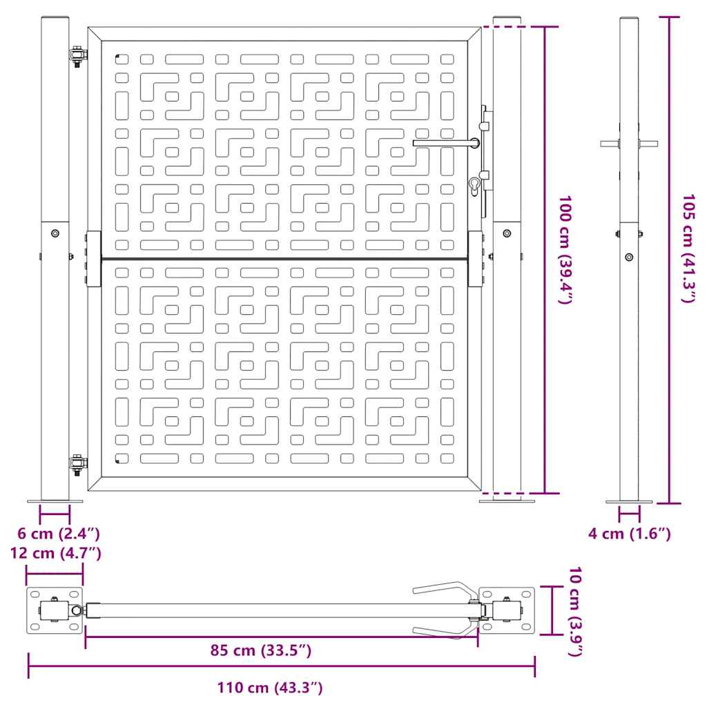 - Kraftig konstruktion: Denne hegnslåge er lavet af vejrbestandigt stål. Forvitringsstål er korrosionsbeskyttende i kraft af sin natur. Det udvikler et rustent beskyttelseslag mod korrosion, når det først udsættes for atmosfæriske forhold. Derfor behøver du ikke at male det. Det kan hjælpe dig med at spare på vedligeholdelses- og reparationsomkostningerne. Den karakteristiske brune farve på forvitringsstålet vil helt sikkert være et blikfang. Endelig er forvitringsstål usædvanligt holdbart og vil kunne klare tidens tand.