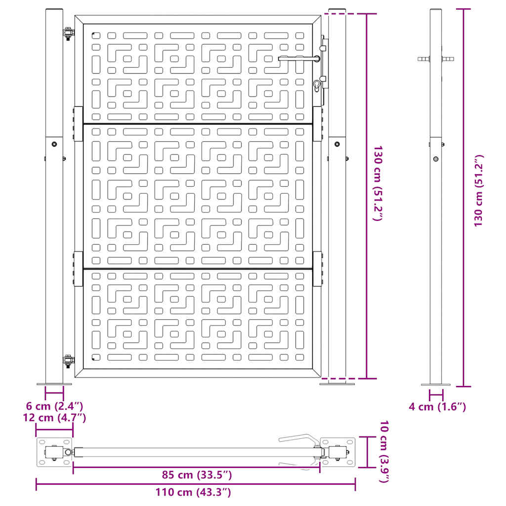 - Kraftig konstruktion: Denne hegnslåge er lavet af vejrbestandigt stål. Forvitringsstål er korrosionsbeskyttende i kraft af sin natur. Det udvikler et rustent beskyttelseslag mod korrosion, når det først udsættes for atmosfæriske forhold. Derfor behøver du ikke at male det. Det kan hjælpe dig med at spare på vedligeholdelses- og reparationsomkostningerne. Den karakteristiske brune farve på forvitringsstålet vil helt sikkert være et blikfang. Endelig er forvitringsstål usædvanligt holdbart og vil kunne klare tidens tand.