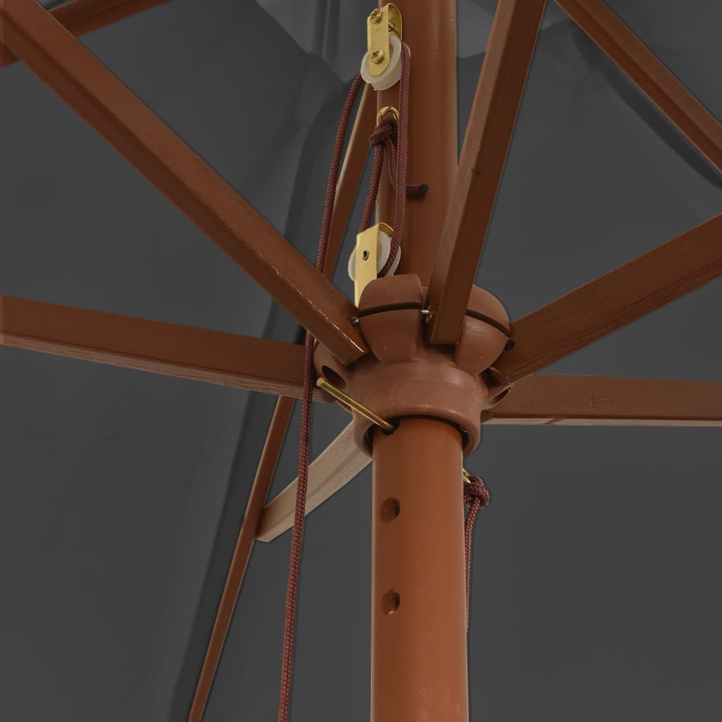 - Stabilt stel: Den stærke stang i hårdttræ med slidstærke ribber gør haveparasollen særdeles stabil og holdbar.