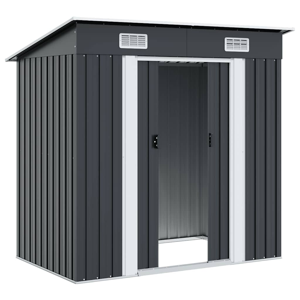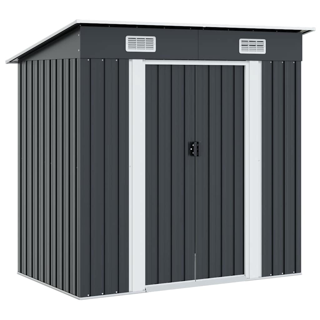 Dette metalskur vil være en fantastisk tilføjelse til enhver baghave, græsplæne eller haveområde. Det er ideelt til opbevaring af haveværktøj, plæneplejeudstyr, husholdningsartikler og meget mere!