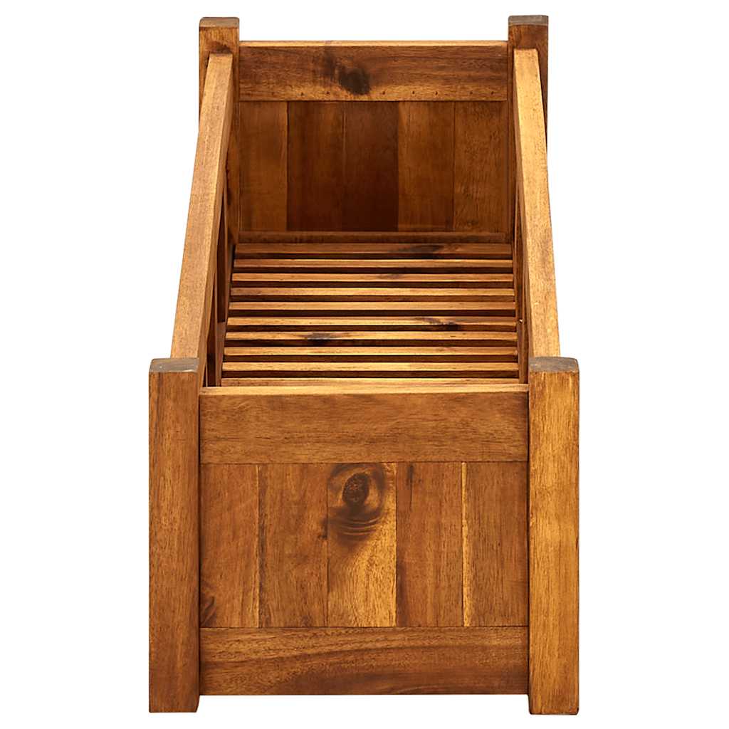 Denne plantekasse, som er lavet af akacietræ i høj kvalitet, er meget robust og slidstærk. Denne plantekasse har også en olielakering for at give træet en varm, rustik farve. Plantekassens bund har lameller, hvilket holder jorden inde og lader overskydende vand dræne ud.