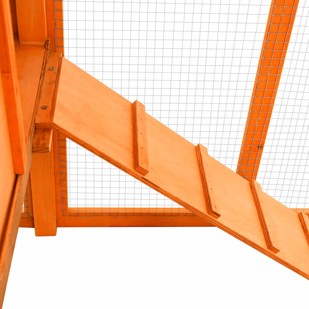 Hønsehuset har et omfattende design med et hus, en redekasse og en meget stor løbegård med galvaniseret ståltrådsnet, så du kan holde øje med dit fjerkræ. Du kan nemt overvåge kyllingerne, og buret giver dem mulighed for at få rigeligt med frisk luft. Hønsehuset er konstrueret af massivt fyrretræ, hvilket gør det holdbart. Vippetaget er desuden dækket af vandafvisende materiale, der holder regn ude. Redekassen er et perfekt soveområde. Derudover fører den skridsikre rampe fra jorden til overetagen, og den udtrækkelige bakke gør rengøringen let.