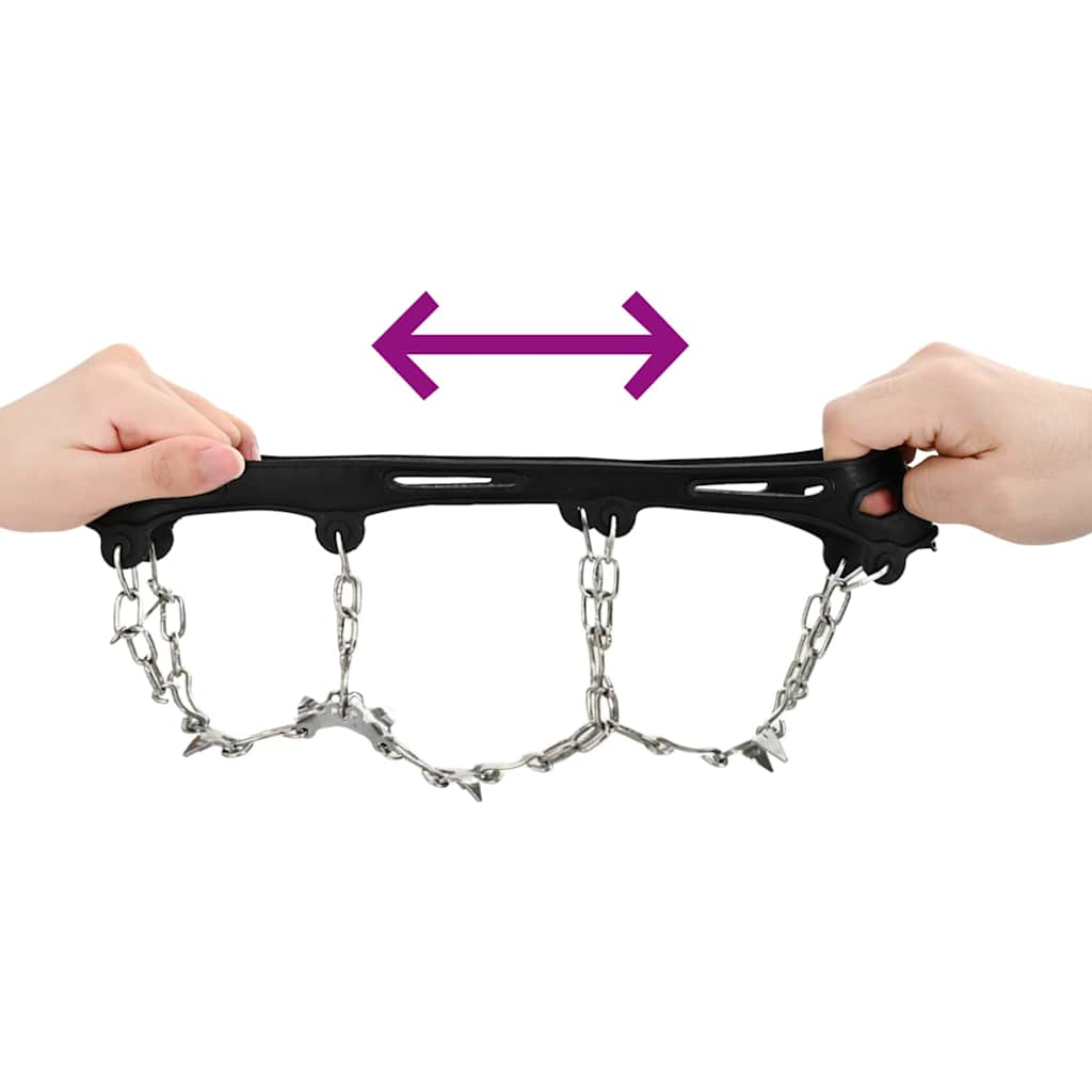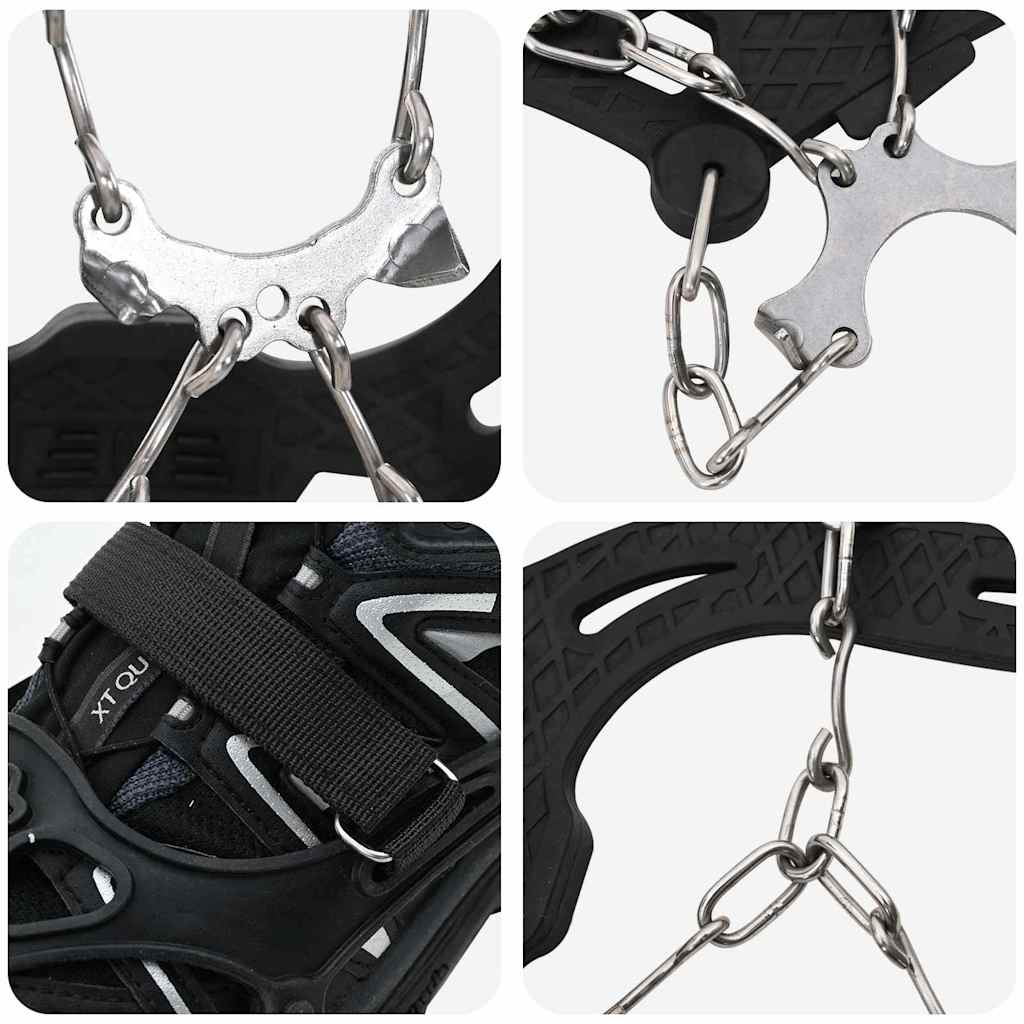 Disse praktiske isklæder til sko er lavet til at give ekstra greb under vinteraktiviteter. Deres form sikrer god ydeevne på glatte overflader, hvilket gør dem perfekte til vandreture med sne eller til hurtige byture. Klæderne har en ergonomisk pasform, der tilpasser sig de fleste typer fodtøj, så de sidder godt. Uanset om du bestiger frostklædte bakker eller tager en vintertur i bjergene, giver de stabilitet og support. Klæderne er ikke bare funktionelle, men ser også gode ud på udendørs eventyr, til trail running og når man går hver dag. De er lavet af termoplastisk elastomer og stål, hvilket gør dem velegnede til ekstreme temperaturer og giver et godt greb på glatte ruter.