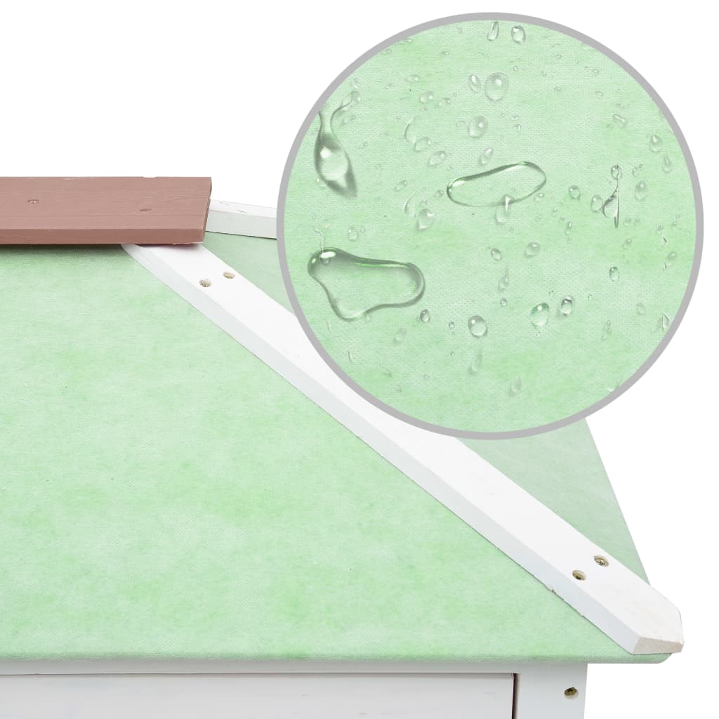 Dette dyrebur har en træramme af fyrretræ, som holder i årevis. Det grønne tag holder regnen ude, mens det hyggelige rum fungerer perfekt som soveområde. Stigen fra den nedre etage til den øvre etage, er nem at klatre. Det er nemt at rengøre med den udtagelige bakke. Dørene er nemme at lukke. Dette kaninbur i træ er perfekt til små kæledyr.