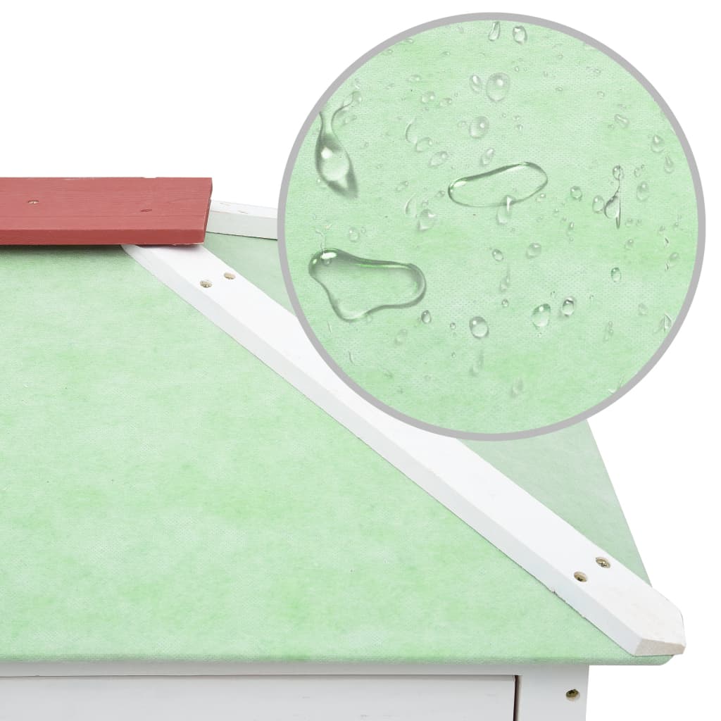 Dette dyrebur har en træramme af fyrretræ, som holder i årevis. Det grønne tag holder regnen ude, mens det hyggelige rum fungerer perfekt som soveområde. Stigen fra den nedre etage til den øvre etage, er nem at klatre. Det er nemt at rengøre med den udtagelige bakke. Dørene er nemme at lukke. Dette kaninbur i træ er perfekt til små kæledyr.