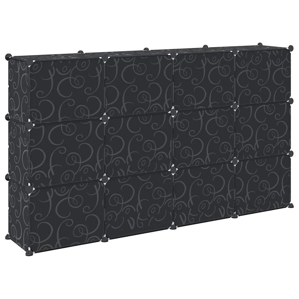 kubeformede opbevaringskasser 12 stk. med låger PP sort