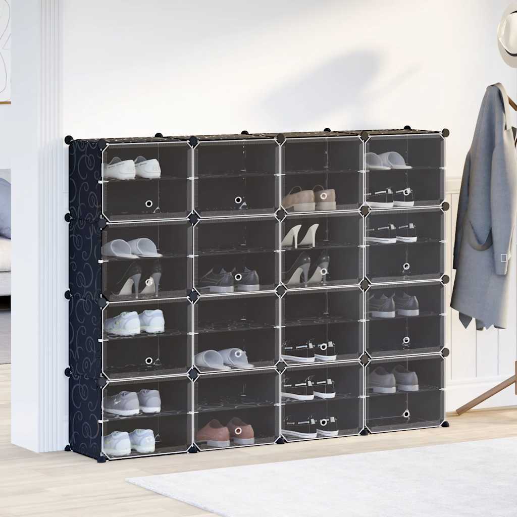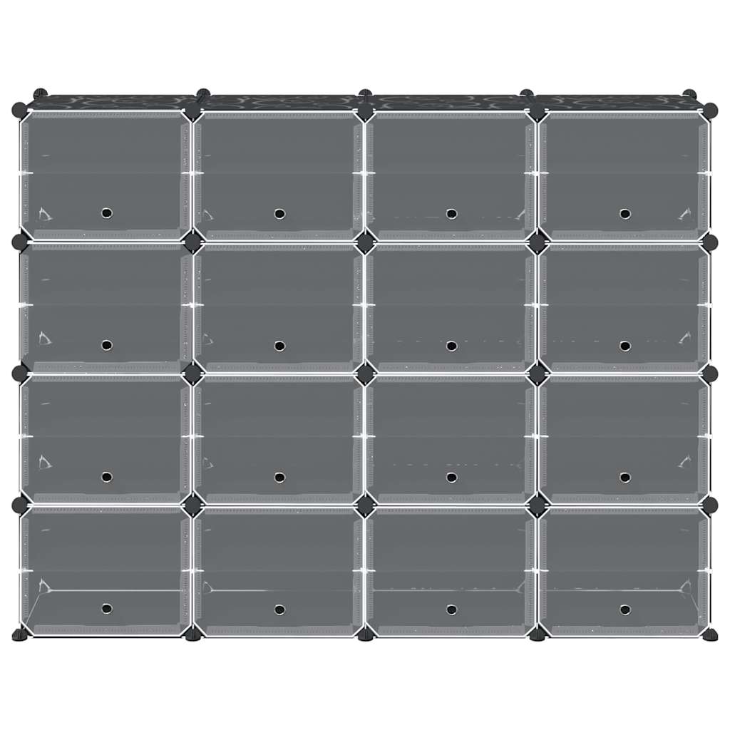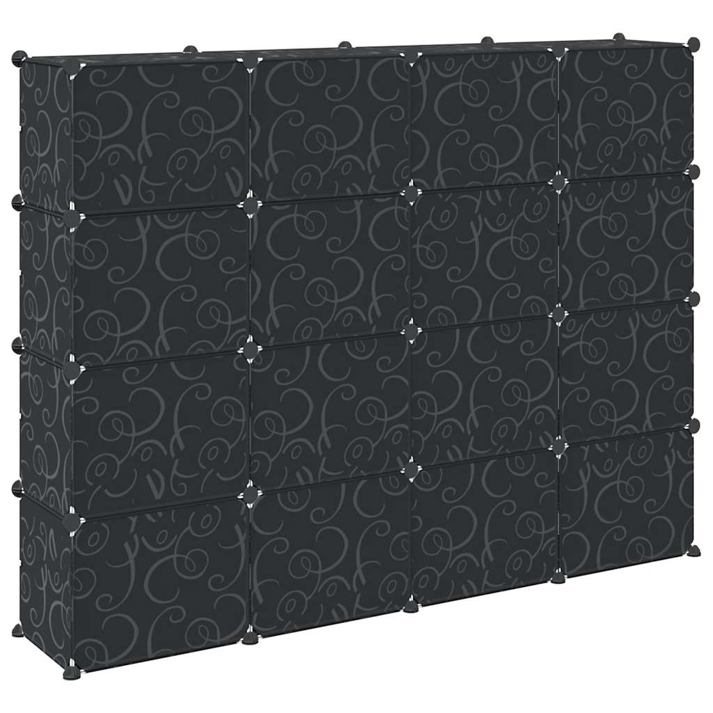 kubeformede opbevaringskasser 16 stk. med låger PP sort