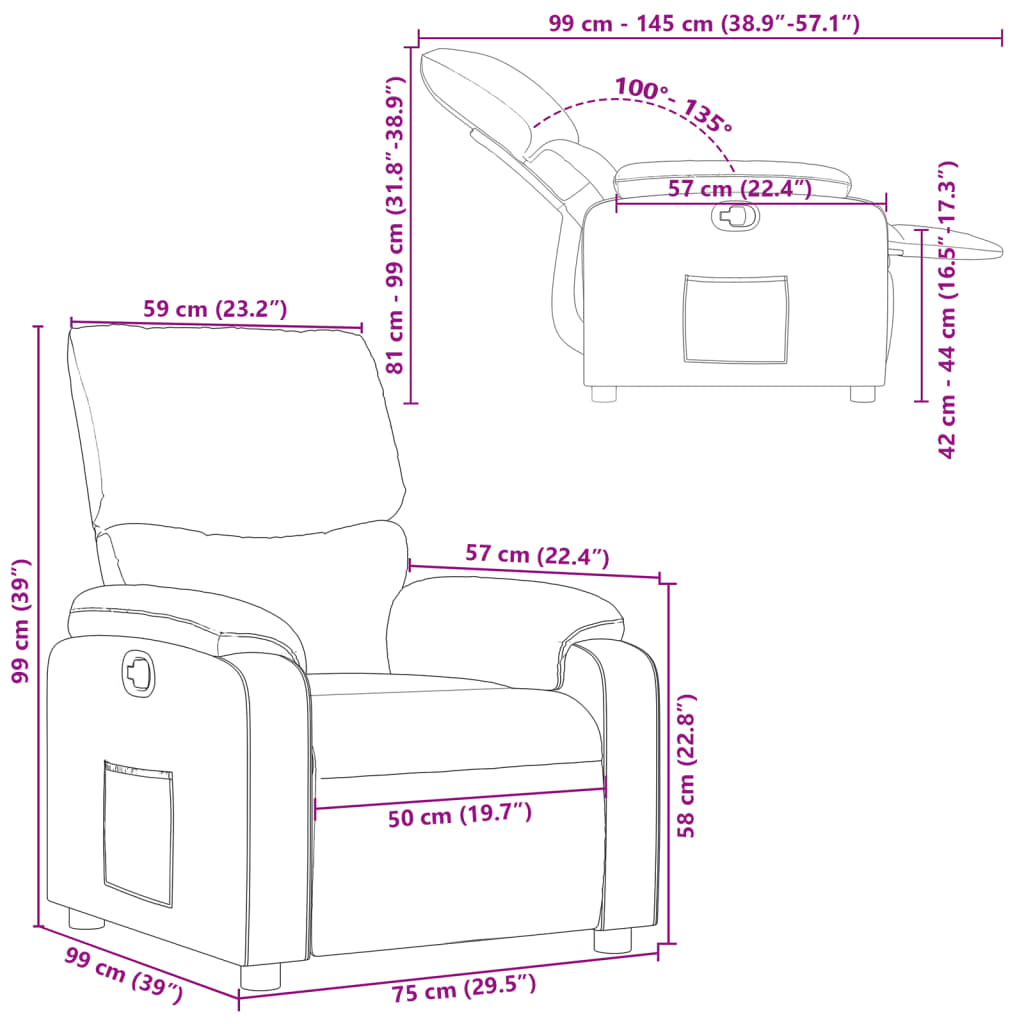 - Liggemål: 75 x 145 x 81 cm (B x D x H)