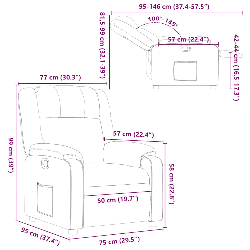 - Mål, tilbagelænet: 77 x 146 x 81,5 cm (B x D x H)